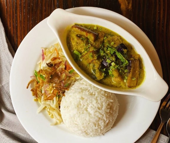 Set Nasi Doeat, Ayam Kari Hijau Thai + 4 pilihan sayuran + 2 keping buah